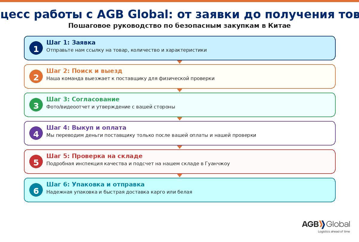 Мы в AGB Global работаем по принципу «Тотальный контроль». Деньги поставщику переводятся только после того, как наш сотрудник физически проверил товар на складе в Гуанчжоу. За 4 года ни один клиент не получил брак. Он не прошел бы мимо нашей инспекции.